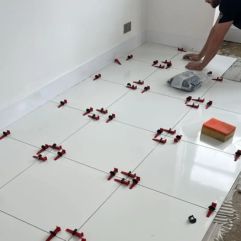 - Expert Grouting: Once the adhesive had set, the tiles were expertly grouted with a matching colour to complement the white porcelain. This step was performed with great care to ensure clean lines and a professional, durable finish.